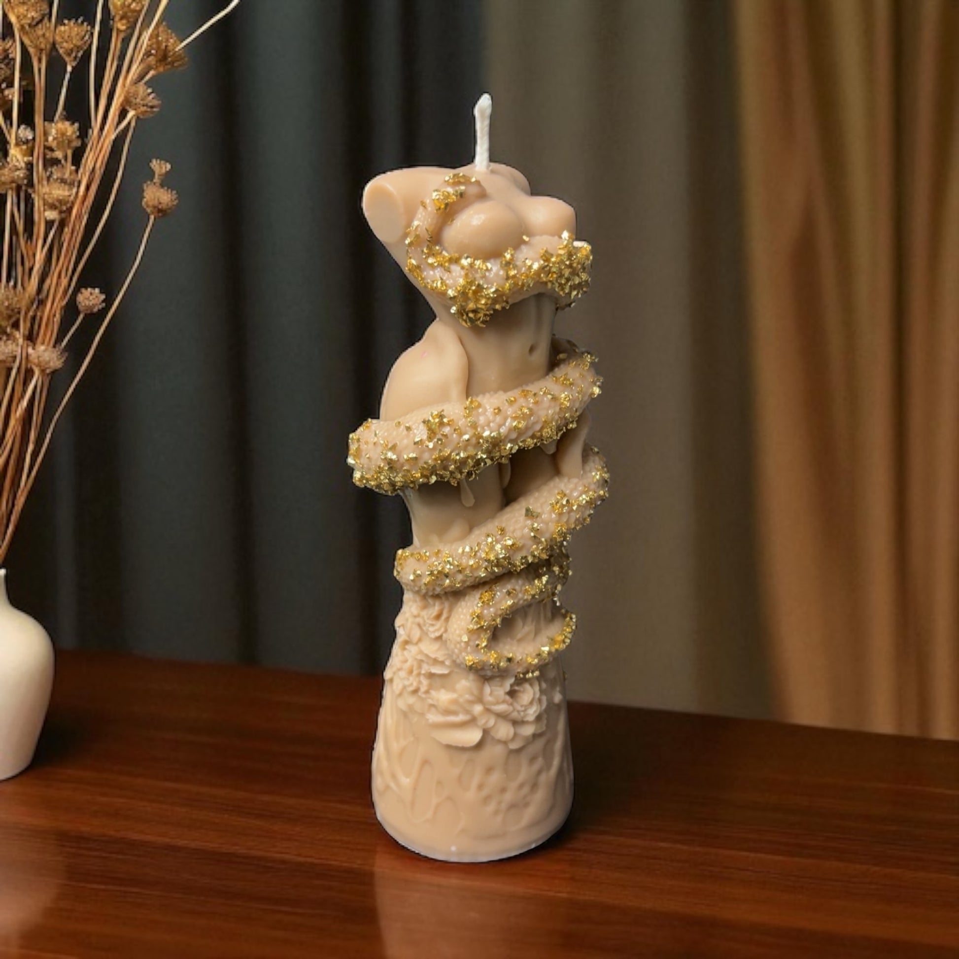 Cette bougie en édition limitée, représentant la féminité pure avec son serpent délicat et ses éclats d’or, diffuse un parfum subtil et envoûtant. Une pièce unique pour sublimer votre intérieur avec élégance et mystère.